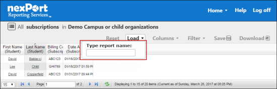- In the Type report name box, type the first few characters of the custom report that you need to load.
