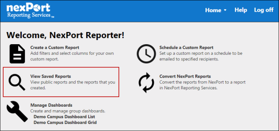- On the NRS homepage, click View Saved Reports.