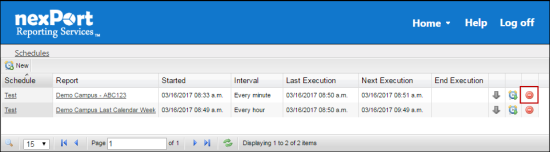 - The schedule of the selected report is deleted. The previously scheduled report no longer runs at the specified interval.