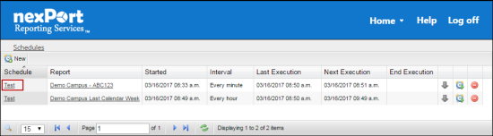 icon in the lower-left corner to search for your custom report schedule by schedule name.